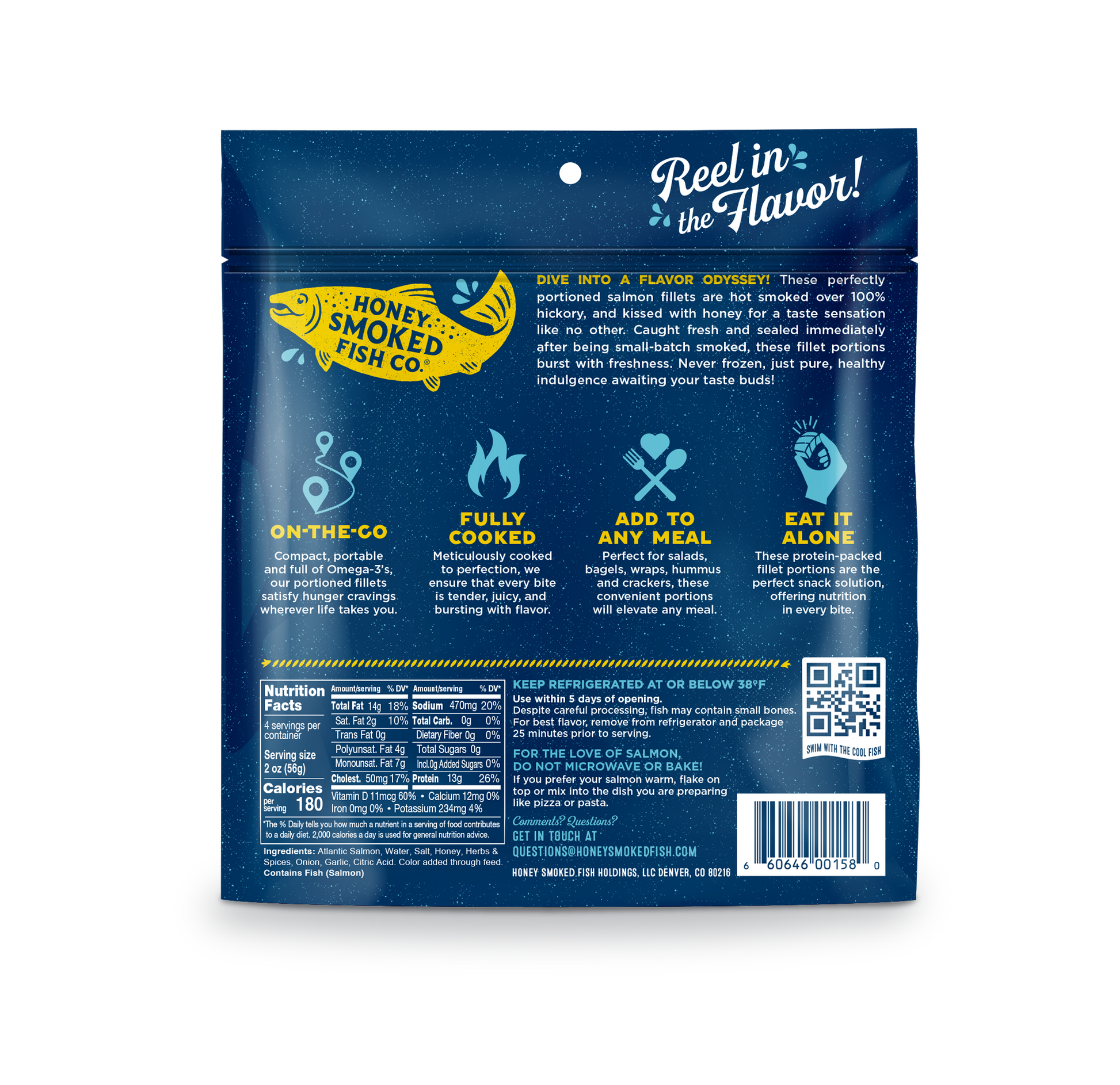 Dive into a flavor odyssey! There perfectly portioned salmon fillets are hot smoked over 100% hickory, and kissed with honey for a taste sensation like no other. Caught fresh and sealed immediately after being small-batch smoked, these fillet portions burst with freshness. Never frozen, just pure, healthy indulgence awaiting your taste buds!